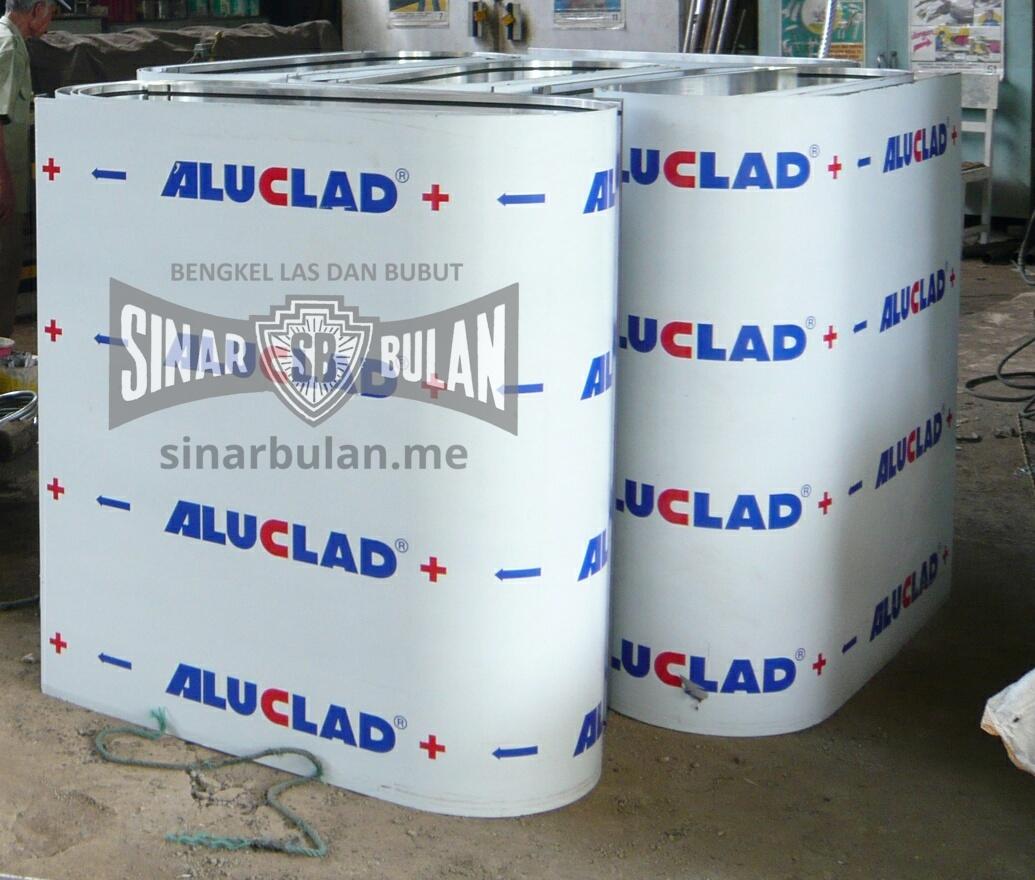 Aluclad (campuran aluminium dan karet yang mengandung plastik, supaya benturan tidak menimbulkan api) di-roll untuk pillar SPBU